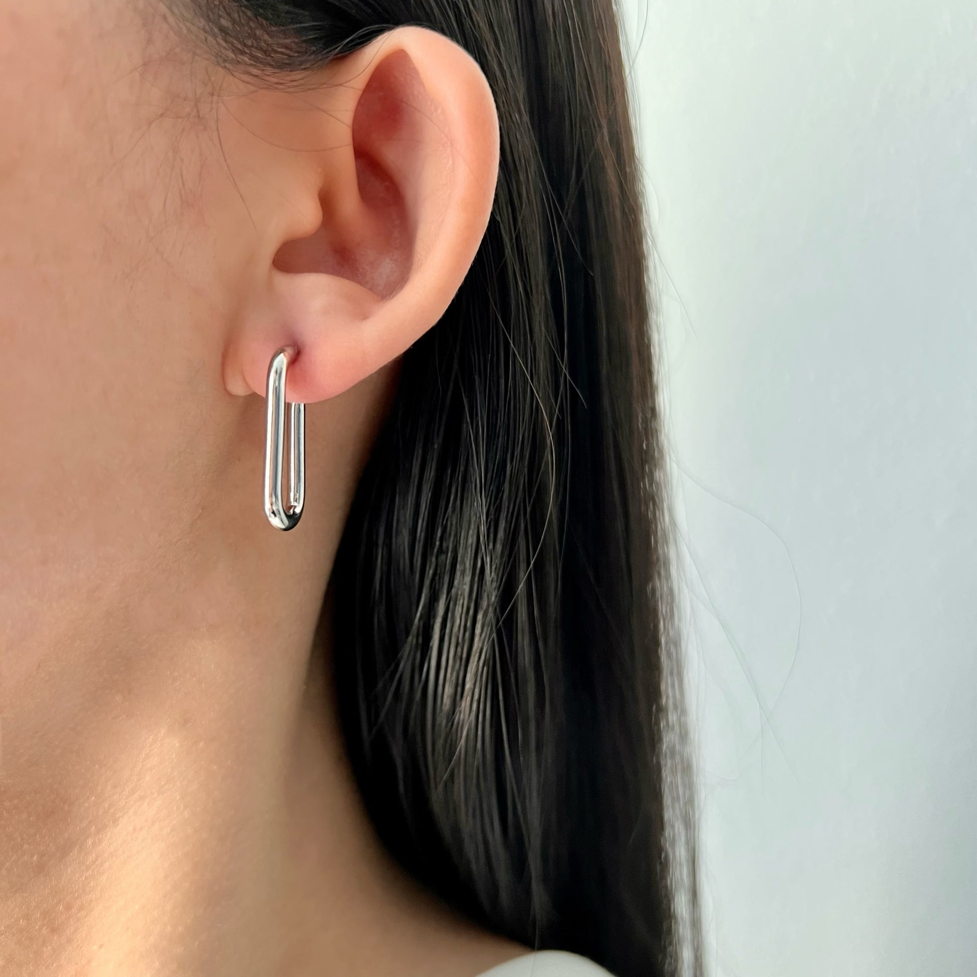 These uniquely shaped link earrings come in White Gold and Yellow Gold. They are the perfect layering accessory for your second hole or wear them alone for a modern chicness.