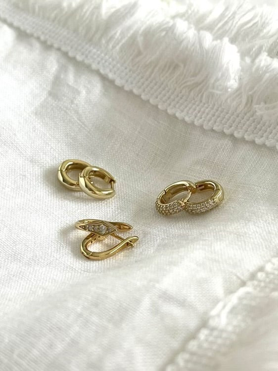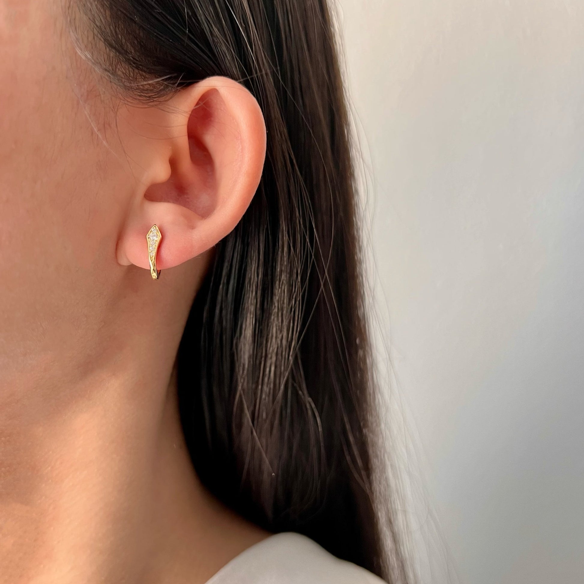 Gold Vermeil. Add a little edge to your spring style with our Snake Eye Mini Hoops. These sterling silver with white CZ mini hoops will draw the eye of everyone in the room. Sold as a pair. Available in Yellow Gold.